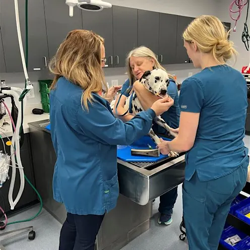 Our team morale and employee engagement are unsurpassed, supported by both our staff and doctor retention, and an impressive nod to our focus on prioritizing work-life balance. Joining our team allows for the opportunity to set your own schedule and select equipment of your choice. We have a fun and collaborative team of experienced veterinarians to support you! We offer an outstanding benefit and compensation package and encourage professional growth and development to all our team members.